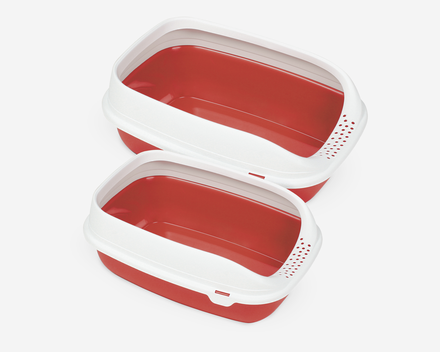 Яркий и функциональный открытый кошачий туалет. Дополняется высокой белой рамкой, обеспечивающей более тщательную очистку.